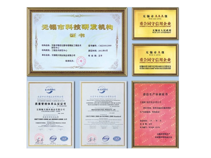 Wuxi AoTian Steel Wire Products Co., Ltd (original: Wuxi HuaTian Standard Piece and Wire Drawing Co., Ltd) was founded in 2000. Our company specializes in manufacturing advanced steel wire products, such as carbon steel spheroidized wire, alloy steel spheroidized wire and rivet wire for cold heading and so on. Our production capacity can reach 40,000 ton per year. Our products are widely used in making auto, aerospace and ship fasteners, precisional electronic screws, high strength bolts and nuts and self-drilling screws and other irregular parts and so on. We have obtained ISO9001:2008 and TS16949:2009 Quality Management System.